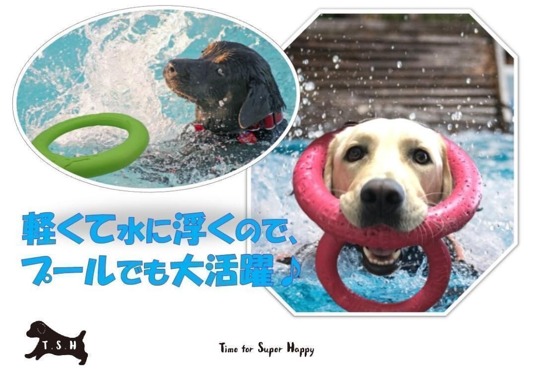このEVA樹脂製の噛むおもちゃは、わんちゃん自身で噛んで遊ぶのはもちろん、フリスビーとして一緒に遊んだり、引っ張りごっこしたり、プールで浮かせたりと、遊び方は無限大です。